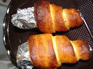 Con la stagnola formate dei conetti, spennellateli di olio e avvolgetici sopra delle strisce di pasta sfoglia stando attenti a non lasciare spazi vuoti, Spennellate anche la sfoglia d'olio e infornate a 180° a forno caldo.